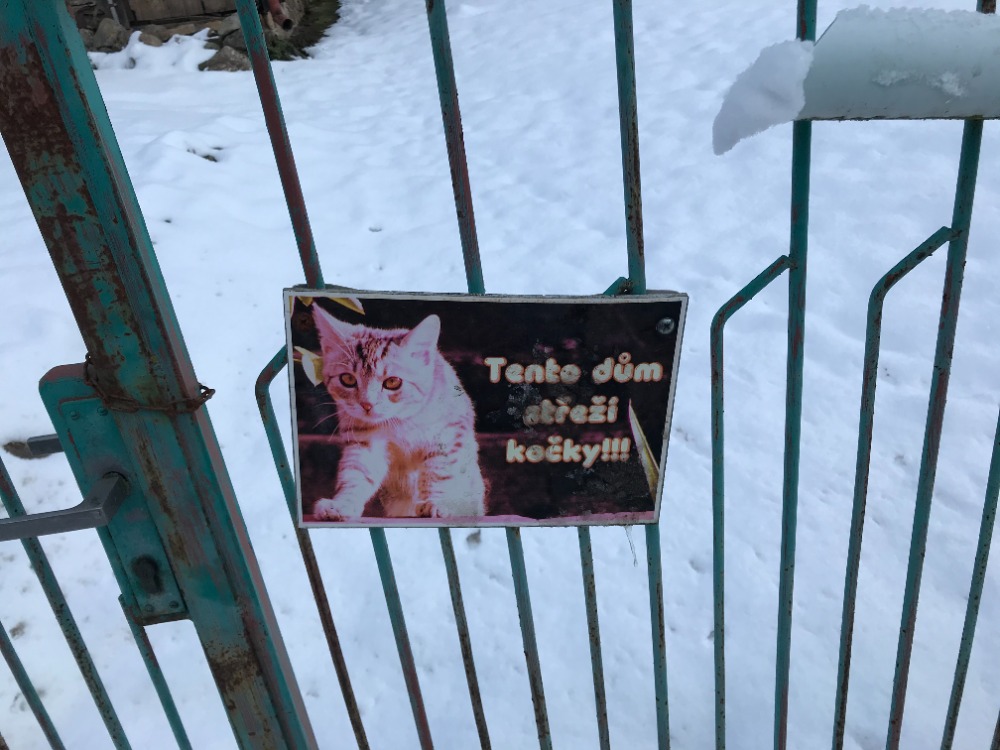 A co jako s tou roubenkou? Obdivovali jste ten domeček nebo cedulku na plotě? Já kočky mám, ale cedulku nemám a nějaká úplně taková roubenka je kus proti vodě....